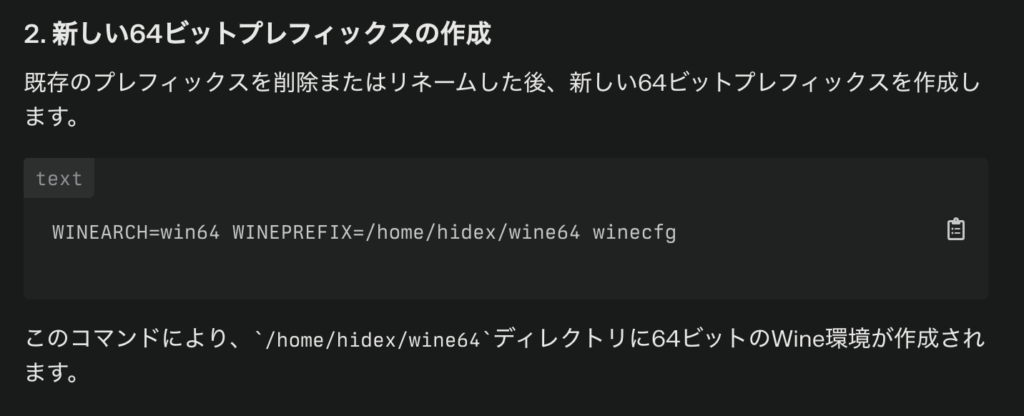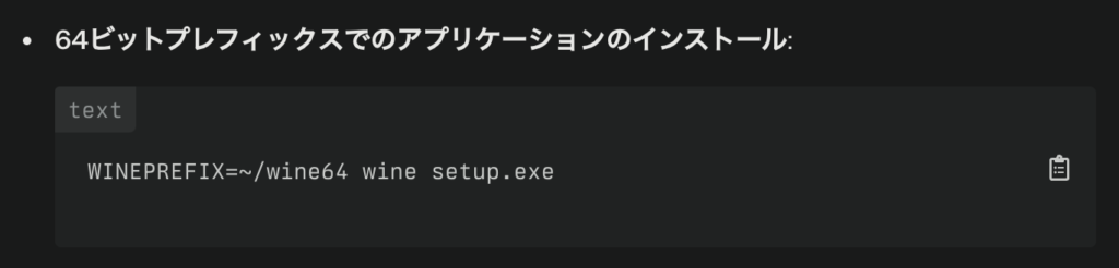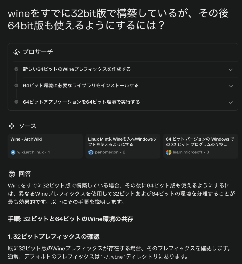 「wineをすでに32bit版で構築しているが、その後64bit版も使えるようにするには?」という質問を行った。どうやら環境の共存は可能だった。